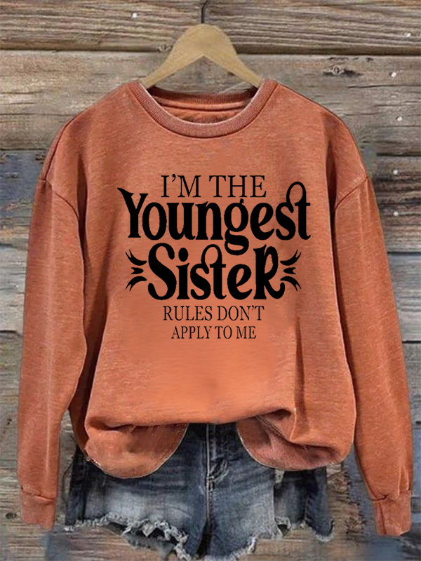 Women's Fun Youngest Sister Loose Lettering Sweatshirt