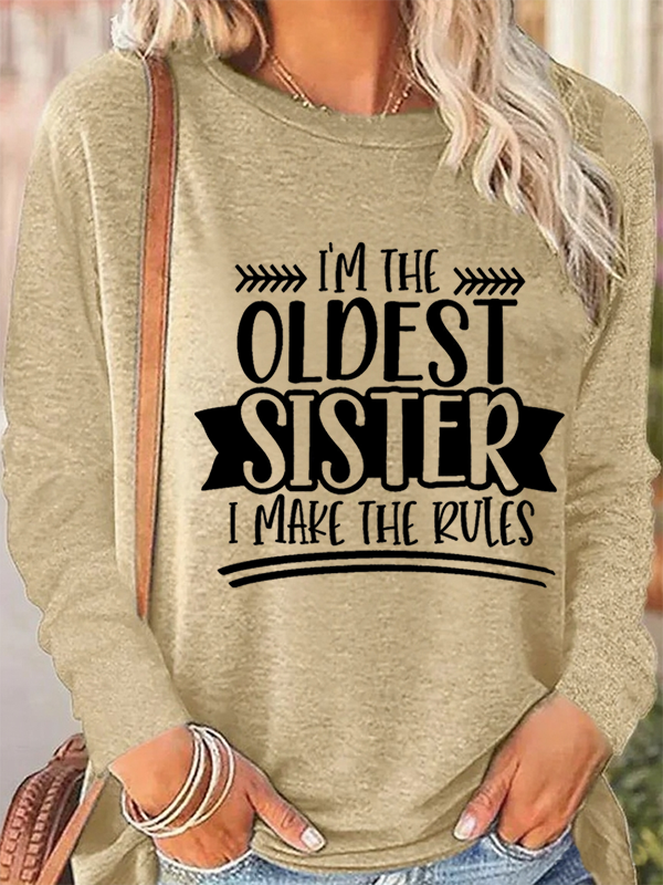 Women's Oldest Sister Loose Lettering Long Sleeve Top